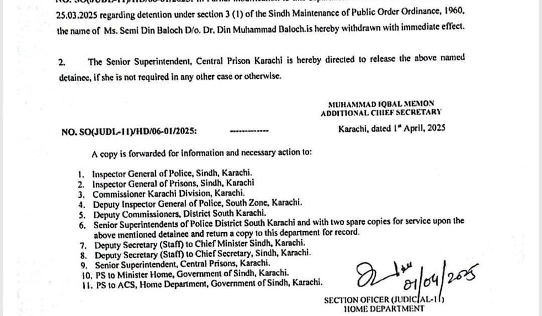 شیئر کریں فیس بک ٹویٹر واٹس ایپ سمیدین بلوچ کو ریلیز کرنے کا آرڈر جاری۔ سندھ حکومت نے 3 ایم پی او سے خارج کردیا admin اپریل 1, 2025April 1, 2025 0 تبصرے Post Views: 138 سمیدین بلوچ کو ریلیز کرنے کا آرڈر جاری۔ سندھ حکومت نے 3 ایم پی او سے خارج کردیا