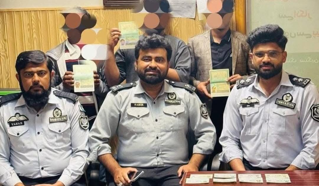 سیالکوٹ سیالکوٹ انٹرنیشنل ایئرپورٹ پر ایف آئی اے امیگریشن حکام کی بڑی کاروائیاں بیرون ملک جانے والے 4 مسافروں سے جعلی پاسپورٹس اور ویزے برآمد،سیالکوٹ انٹرنیشنل ایئرپورٹ پر ایف آئی اے امیگریشن حکام نے جعلی سفری دستاویزات پر سفر کرنے والے 4 مسافر گرفتارکر لئے گرفتار مسافروں کی شناخت وقار احمد، ثناءاللہ، جاوید اقبال اور راشد کے نام سے ہوئی ملزمان نے فلائٹ نمبر FZ338 کے ذریعے باکو جا رہے تھےامیگریشن کلئیرنس کے دوران مسافروں کو مشکوک پایا گیا ابتدائی تفتیش کے وقار احمد ،ثناءاللہ اور جاوید اقبال نامی ملزمان سے 8 جعلی جرمن پاسپورٹ اور 8 جعلی شینگن ویزے برآمد ہوئے ملزمان نے مذکورہ دستاویزات عدنان اور علی نامی ایجنٹوں سے حاصل کیے مذکورہ ایجنٹوں نے مسافروں سے مجموعی طور پر 80 لاکھ روپے وصول کیے جبکہ راشد علی نامی مسافر سے 5 عدد جعلی کینیڈین ویزہ اسٹیکرز برآمد ہوئے ملزم وزیر آباد کے رہائشی رانا افضل نامی ایجنٹ سے رابطے میں تھاملزم کینیڈا ملازمت کا خواہش مند تھا ملزم نے مذکورہ ایجنٹ کو کینیڈا کی سفری دستاویزات مکمل کرنے کے لئے 40 لاکھ روپے ادا کیے گرفتار مسافروں کو مزید تفتیش اور ایجنٹوں کی نشاندھی کے لیے انسدادِ انسانی