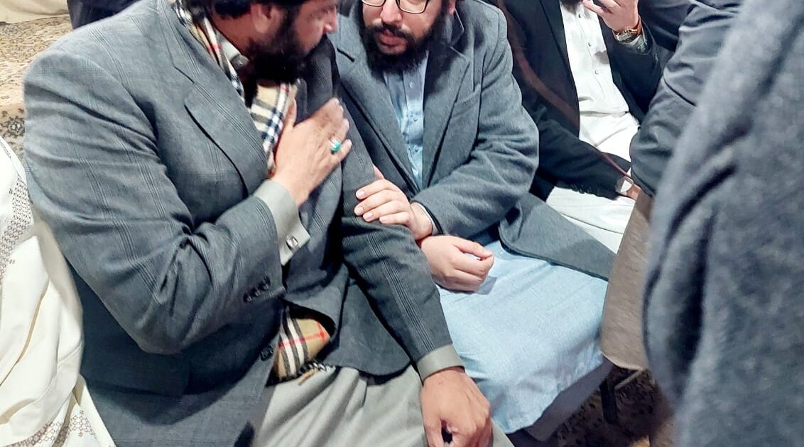 پارٹی راہنماء مصطفیٰ ملک تعزیتی پیغام لے کر اکوڑہ خٹک پہنچے، تعزیتی تقریب سے خطاب کیا