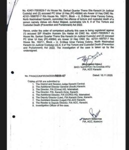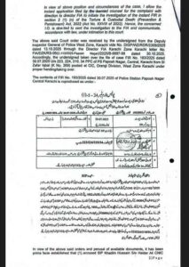 عدالتی احکامات پر ایف آئی اے کو مقدمہ اندراج اورتحقیقات کے لئے ڈی آئی جی ویسٹ زون نے مراسلہ ارسال کیا تھا