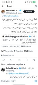 جس پر #میجرعامر کے کزن اور پیرا شوٹ صحافی حماد حسن نے یاددالا کہ