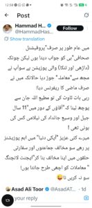 لیکن جب اسد طور نے جواب دیا تو حماد حسن عبد القیوم صدیقی اور عمر چیمہ کو چپ لگ گئی