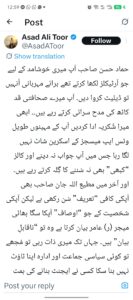 اسد طور نے ٹویٹر پر جواب دیا کہ