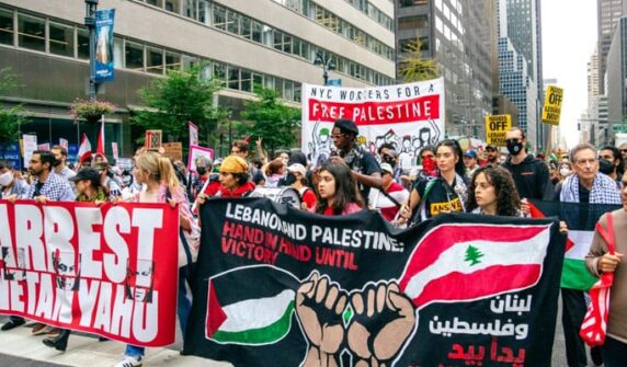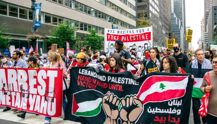 نیویارک میں بھی بڑی تعداد میں لوگ سڑکوں پر نکل آئے جہاں فلسطین، لبنان اور ایران کے خلاف امریکی و اسرائیلی کارروائیوں کے فوری خاتمے کا مطالبہ کیا۔