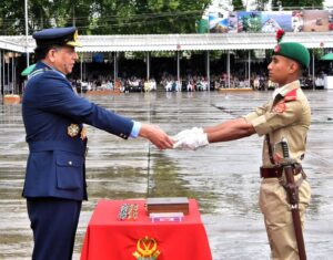 پاک فضائیہ کے سربراہ نے پریڈ کا جائزہ لیا اور ممتاز کیڈٹس کو اعزازات سے نوازا۔ 153ویں پی ایم اے لانگ کورس کے اکیڈمی کے سینئر انڈر آفیسر بلال نسیم کو اعزازی تلوار سے نوازا گیا۔ 153ویں پی ایم اے لانگ کورس کے بٹالین کے سینئر انڈر آفیسر محمد سعد موسیٰ کو پریذیڈنٹ گولڈ میڈل اور 153ویں پی ایم اے لانگ کورس کے نیپال سے تعلق رکھنے والے فرینڈلی کنٹری سینئر انڈر آفیسر پوبن کنور کو چیف آف ڈیفنس فورسز اوورسیز گولڈ میڈل۔ 153 ویں پی ایم اے لانگ کورس کے جنٹلمین کیڈٹ مسعود الرحمان کو مارکس مین میڈل دیا گیا۔ چیف آف آرمی سٹاف کین نے 38ویں ٹیکنیکل گریجویٹ کورس کے انڈر آفیسر حیدر بن عابد کو کورس سے نوازا۔ 15ویں مجاہد کورس میں چیف آف آرمی سٹاف کین سارجنٹ پیر محمد عبداللہ شاہ کو دیا گیا۔ کمانڈنٹ کینز 72ویں انٹیگریٹڈ کورس کے کورس انڈر آفیسر علی بن وقار اور 27ویں لیڈی کیڈٹ کورس کے انڈر آفیسر والیہ زیب کو دی گئی۔