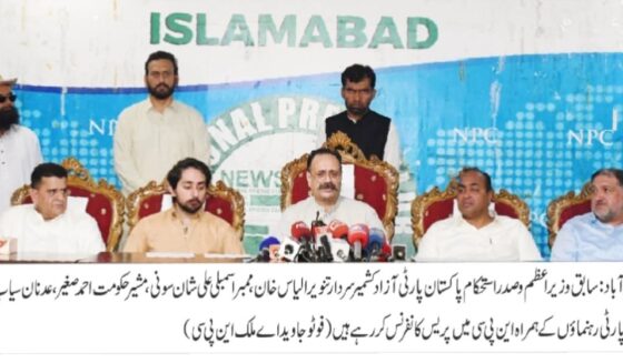 مسئلہ کشمیر کوعالمی برادری کی توجہ کی ضرورت ہے،کشمیری اپنی آزادی پر کسی قسم کا سمجھوتہ نہیں کرینگے صدر استحکام پاکستان پارٹی آزاد کشمیر و سابق وزیر اعظم سردار تنویر الیاس خان
