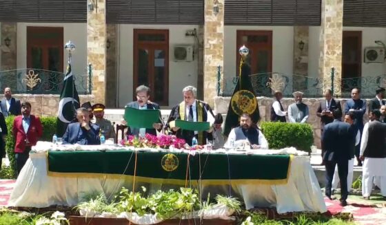 شیخ جعفر مندوخیل بلوچستان کے 24 ویں گورنر کا حلف اٹھالیا چیف جسٹس بلوچستان ہائی کورٹ ہاشم خان کاکڑ حلف لیا وزیراعلیٰ بلوچستان میر سرفراز بگٹی شریک ہوئے ۔