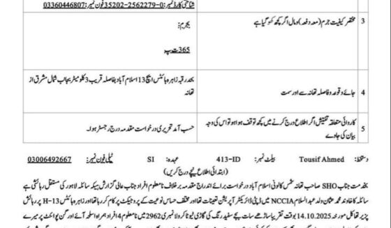 نیشنل سائبر کرائم انوسٹی گیشن ایجنسی کے افسر کے اغواء کا مقدمہ درج اسلام آباد سے نیشنل سائیبر کرائم انویسٹیگیشن ایجینسی (NCCIA) آف FIA کے ڈپٹی ڈائریکٹر آپریشنز کو گھر سے گن پوائنٹ پر اغواء کر لیا گیا تھا تھانہ…